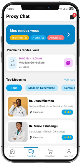 ProxyDoc est lancé en République Démocratique du Congo avec une vision d’extension en Afrique. L’application peut être téléchargée depuis les stores internationaux ; la couverture des pharmacies et services dépend des partenariats par pays.